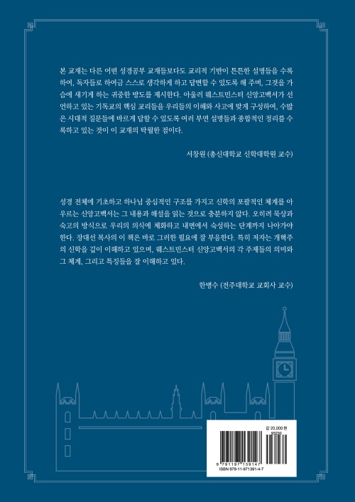 “본 교재는 다른 어떤 성경공부 교재들보다도 교리적 기반이 튼튼한 설명들을 수록하여, 독자들로 하여금 스스로 생각하게 하고 답변할 수 있도록 해 주며, 그것을 가슴에 새기게 하는 귀중한 방도를 제시한다. 아울러 웨스트민스터 신앙고백서가 선언하고 있는 기독교의 핵심 교리들을 우리들의 이해와 사고에 맞게 구성하여, 수많은 시대적 질문들에 바르게 답할 수 있도록 여러 부연 설명들과 종합적인 정리를 수록하고 있는 것이 이 교재의 탁월한 점이다.”