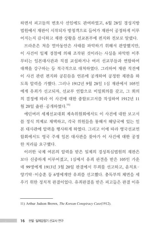 한국기독교역사연구소에서는 2006년에 발행한 초판 한말·일제강점기 선교사 연구의 개정증보판을 2023년 8월에 발행하였다. 초판은 7편의 논문과 자료를 번역한 6편의 부록으로 구성하였으나, 이번 개정증보판에서는 부록을 모두 생략하고 필자가 그동안 새로 발표한 논문 9편을 추가하여 총 16편의 논문을 수록하였다. 오랜 기간 동안 내한 선교사들에 대한 연구를 꾸준히 해온 필자의 연구 족적을 알 수 있는 성과물이다. 초판에 이어 개정증보판에서도 한국교회의 선교사에 대한 이해와 한국 근대사 속에서 내한 선교사들의 역할 등을 다양한 시각에서 조명하였다. 특히 한말부터 1940년대 선교사들의 철수·송환시기까지 105인사건, 3.1운동, 제암리교회 학살 방화 사건, 신사참배문제에 대한 선교사들의 입장들을 자료를 통해 충실하게 서술하였다. 그 외 태평양전쟁기 미국 선교사와 자녀들의 대일전 참여에 대한 글은 선교사들의 선교활동에 대한 인식의 폭을 넓히는 데 도움을 줄 것이다. 특히 이 책에서 필자는 선교사 연구와 평가에서 선교사에 대한 객관적 인식을 가져야 한다고 주장한다. 즉 선교사들은 우리 민족의 일원이 아니라 외국 국적을 가지고 그 나라의 지시와 보호를 받는 외국인이기에, 민족적 관점에서 선교사들이 한국에 온 목적인 복음 전도와 교회 설립에 충실하고자 노력한 점을 비난해서는 안 되며, 처한 시대와 문화적 한계, 개인의 성격차 등에 따라 그들의 존재 의의와 한계를 명확히 인식해야 한다고 강조하였다.