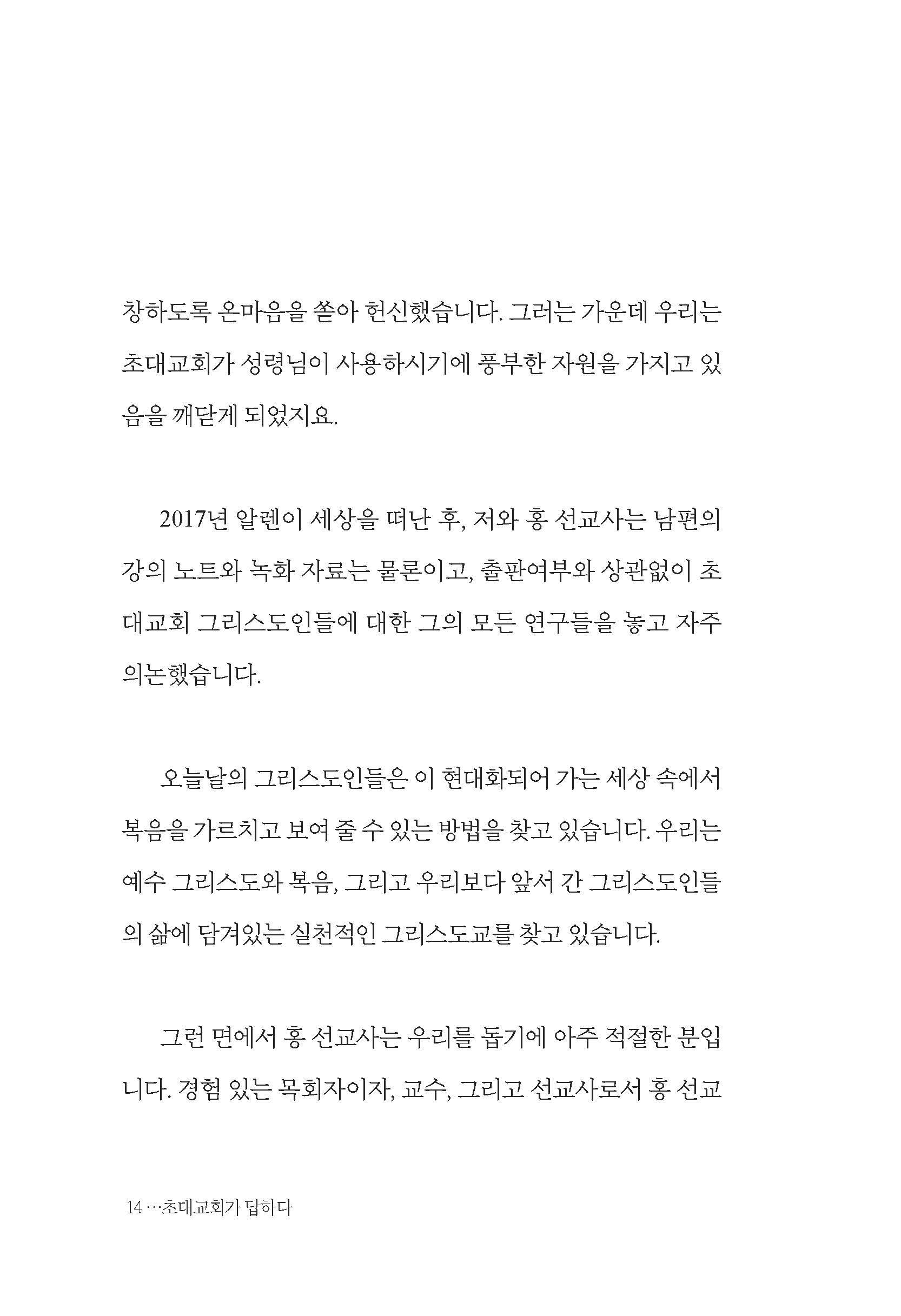 교회의 원형과 본질을 회복하고자 하는 현대의 그리스도인들이 묵상과 회복의 여정 가운데 숙고했으면 하는 주제들을 여기에 담았다. 이 책에 담긴 다섯 가지 주제를 읽어가며 초대교회의 다섯 가지 다른 모습을 보고, 그 다섯 가지 주제 “예배•공동체•세례•제자도•선교”에 관해 우리에게 말을 건네는 초대교회 그리스도인들을 만나보자.