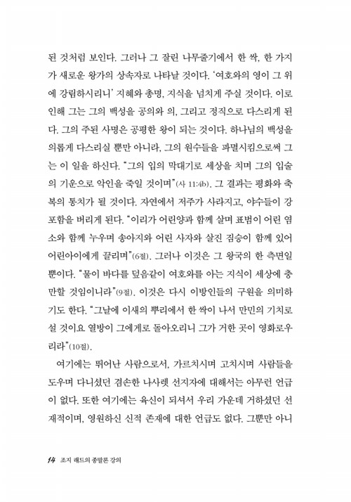 이 책은 종말론에 관한 성경적이며 종합적인 개론서이다. 예수님의 재림, 성도의 부활과 휴거, 하나님 나라와 마지막 때의 심판에 관해, 복음주의 신학자인 조지 래드는 성경에 근거해서 간결하고도 명쾌하게 설명한다. 목회자와 신학생은 물론이고, 신학을 전문적으로 공부하지 않은 사람이라도 종말론을 체계적으로 정리하는 데 이 책이 큰 도움이 될 것이다.
