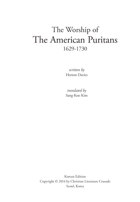 (청교도 시리즈 2) 청교도 정신 - 17세기 미국 청교도들의 신앙과 생활