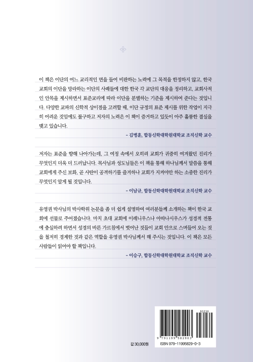 이 책은 이단의 사례들에 대한 한국 각 교단의 대응을 정리하고 교회사적인 안목을 제시하면서 표준교리에 따라 이단을 분별하는 기준을 제시했다.