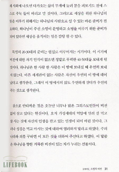 수 있다. 부록으로 20대 그리스도인이 읽어야 할 좋은 책들을 소개해서 많은 도움을 줄 수 있다.