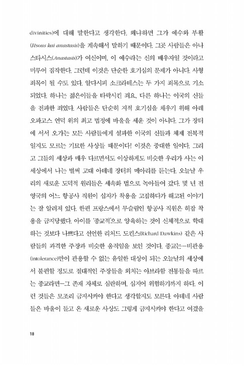 종교적 문맹(文盲) 상황 속에서 수십억 명의 사람들이 하나님을 믿고 ‘실천하는’ 세상에 대해 거의 준비가 되어 있지 않다. 오늘날 세상은 선을 위해서든 악을 위해서든 강력한 힘으로 종교가 이용되는 곳이다. 『광장에 선 하나님』의 냉엄한 현실주의는 회고적 향수(鄕愁)로 빠져드는 경우가 결코 없으며, 변덕스럽고 위험한 바다의 항해에 필요한 해도와 지도를 제공한다. 톰 라이트의 메시지에는 진정성과 시급성이 배어 있다. 당신의 배경이 세속적이든 신앙적이든 상관없이, 『광장에 선 하나님』은 당신에게 중요한 통찰을 들려줄 것이다.