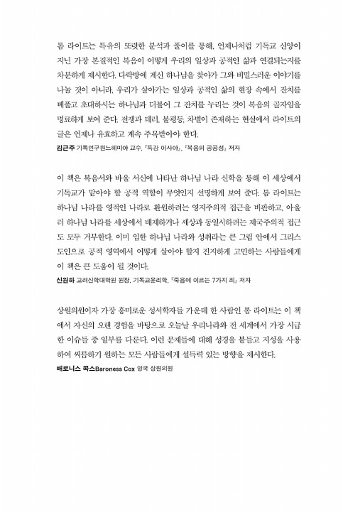 ★ 김근주(기독연구원 느헤미야 교수), 신원하(고려신학대학원 원장), 데이비드 앨턴(영국 상원의원) 등 추천!
