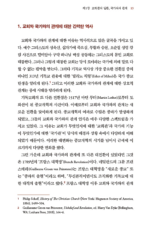 1. 교회와 국가와의 관계에 대한 간략한 역사 13