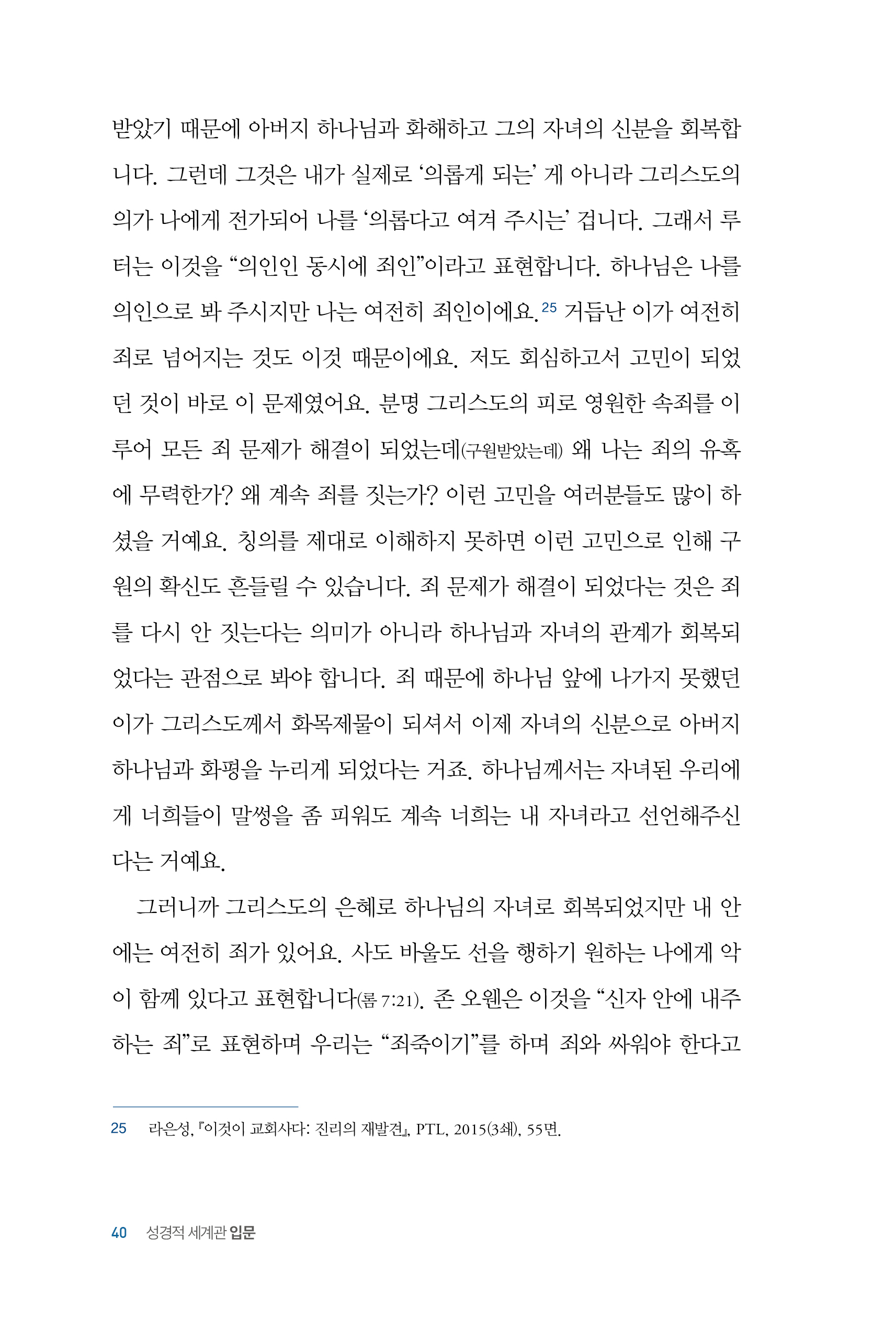 - 법정적 칭의: 구원받은 크리스천이 왜 계속 죄를 지을까
