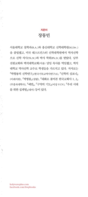 기다려왔던 이 책의 출판을 진심으로 축하한다. 이 책은 저자의 방대한 지식과 지혜의 깊이에 대해 놀라움을 자아낸다. 심각한 위기에 직면한 한국교회를 다시 살려내기 위해 진지하게 고민하며 길을 찾고 있는 분들은 이 책에서 결정적인 도움을 받으리라 확신한다.