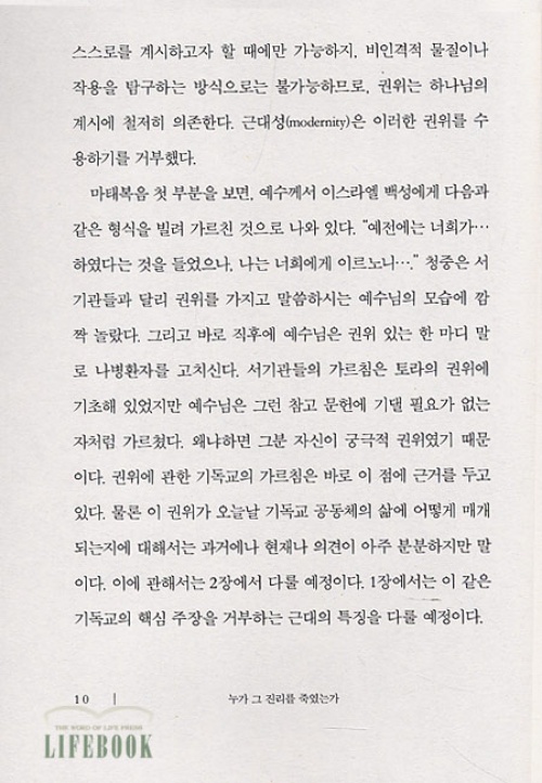 * 현대 사회에서의 권위와 진리에 대한 질문을 다룬 책