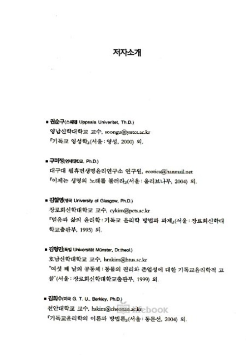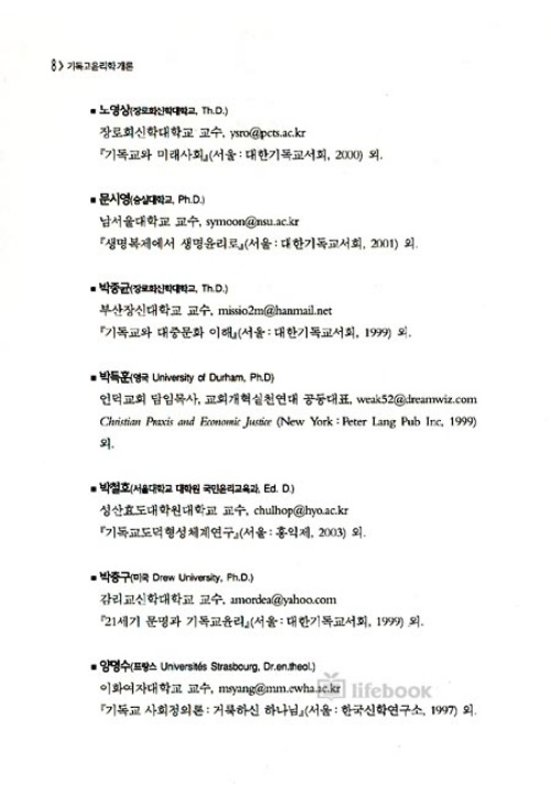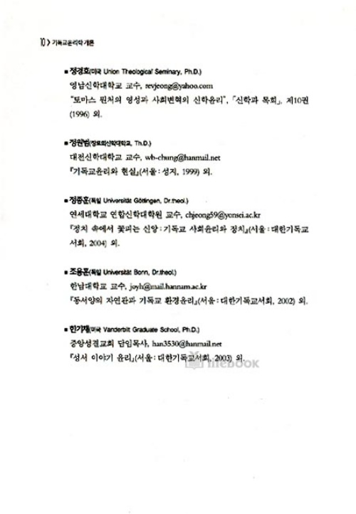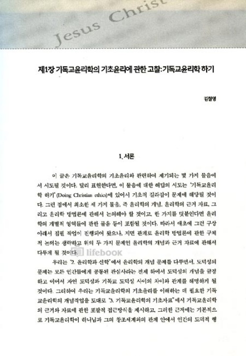 이 책은 3부로 구성되어 있습니다. 1부에서는 기독윤리학의 이론적 기초를 다루었으며, 2부는 기독교윤리사상의 역사에 대해, 그리고 3부는 기독교 윤리학의 사회적 실천 문제를 취급하고 있습니다. 이 책이 각 신학대학교 기독교 윤리학 분야의 교과서 및 대학원에서 기독윤리학을 전공하려는 사람들의 입시준비로서, 널리 사용되기를 필진 모두는 소망하고 있습니다.