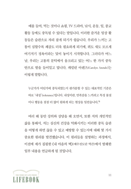 "다림줄" 강의로 잘 알려진 《내 마음의 벽》의 저자 브루스&바버라 톰슨 부부는 이 짧은 책을 통해 우리 안에 나타나는 중독의 모습과