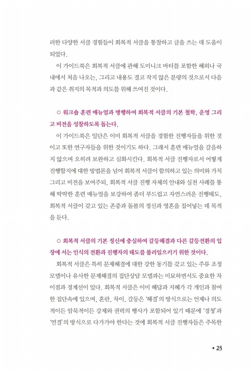 갈등 전환과 공동체 구축을 위한 회복적 서클 가이드 북