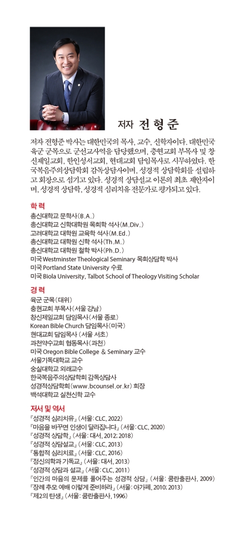 전형준 박사는 이미 성경적 상담학의 권위자로서 그동안 많은 책을 저술해서 개혁주의 입장에서 이론과 실제를 제시해 왔었다. 바라기는 이 책이 모든 목회자와 평신도에게 널리 읽히기를 바라는 마음으로 적극 추천하는 바이다.