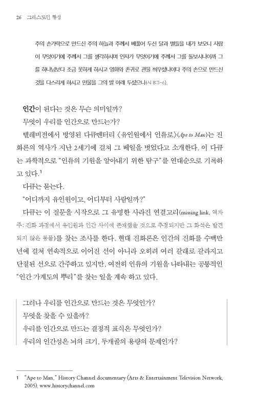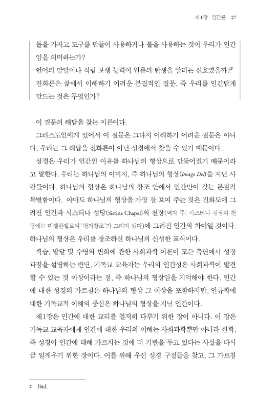 기독교 교육과 사회과학의 인간 발달 이론을 접목해 그리스도인의 성장, 정확하게는 성화의 과정에 대한 이해를 통해 기독교 교육의 목적을 밝힌다. 특히, 본서는 그리스도인의 문화관을 분명하게 제시한다. 필경 본서는 지금까지도 은 연중에 계속되어 온 한국 교회 내의 문화에 대한 논란에 마침표를 찍는 책이라고 할 수 있다.