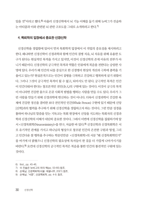 신경신학은 신경과학자의 학문적이고 실험적인 도움 없이는 불가능하다.