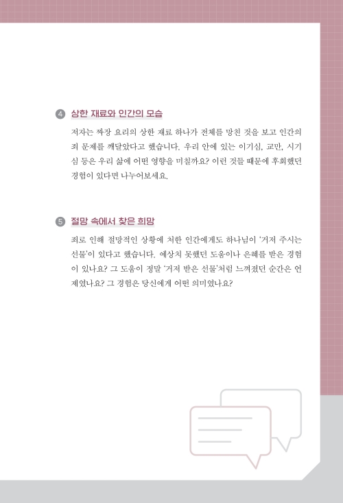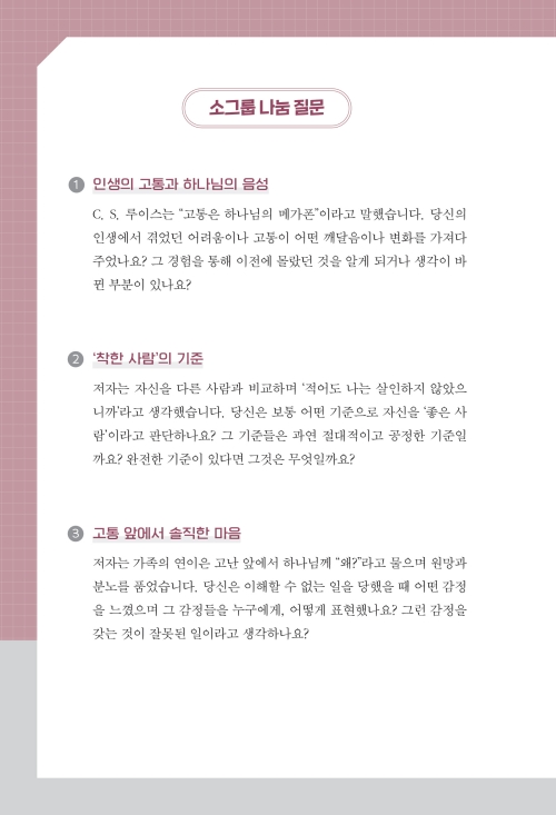 개인 및 소그룹에 유용한 묵상과 토론 질문, 실천 워크북 수록