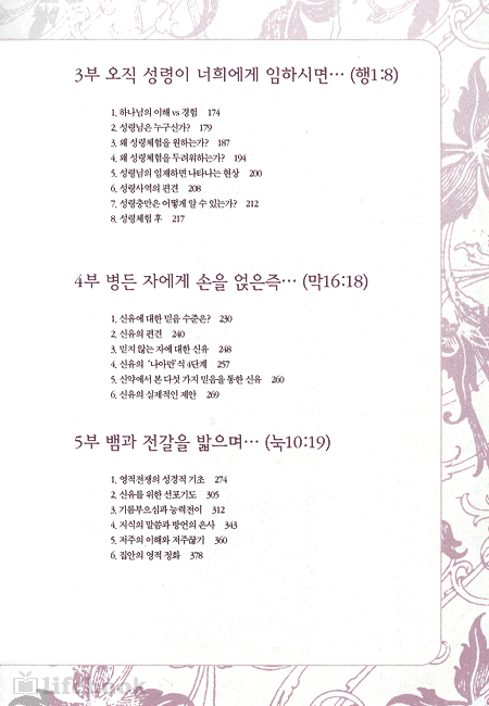 이 책 1부에서는 죄와 회개, 새로운 삶, 하나님 나라의 법칙들과 킹덤 맨털리티(천국백성으로서의 정신)을 이야기했다. 2부에서는 믿음의 삶을 이야기했다. 아직도 많은 성도들이 하나님이 주신 계시적인 믿음과 신앙공식적인 믿음 혹은 자기경험적 믿음을 분별하지 못하는 경우가 많다. 3부에서는 성령체험이 무엇이며, 성령체험시 나타나는 여러 가지 현상들을 구체적으로 언급했다. 특히 성령체험 후의 현상들을 내적치유적인 측면에서 분석해 보았다. 우리 모두 상처받은 자로 우리 스스로도 치유받아야 하며, 동시에 병든 사람에게 손을 얹을 줄 알아야 한다. 그런 의미에서 4부에서는 신유에 대한 잘못된 편견과 올바른 믿음, 그리고 신유를 위한 실제저거인 지침들에 대해서 알아보았다. 마지막 5부에서는 실제적인 치유 사역을 할 때, 절실히 필요하지만 잘못 알고 있거나 잘 알려지지 않은 몇 가지 문제들을 다루었다. 예를 들면 사역에 필요한 선포기도, 지식의 말씀과 방언의 은사의 경험과 저주에 대한 의문점 등이 포함된다.