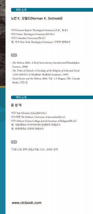 고대 근동학이 구약성경 연구에 어떤 영향을 미쳤는지를 보시게 될 것이며, 갓월드 박사가 고대 이스라엘 정치를 다루면서 어떤 사료를 어떤 방식으로 사용하고 있는지도 보게 될 것이고, 더 근본적으로는 성서의 역사관과 그 역사관을 해석하는 갓월드 박사의 역사관을 보게 될 것이다. 이것만이라도 제대로 파악한다면 이 책을 읽은 후에 얻은 소중한 가치와 보람으로 충분하리라 생각한다.