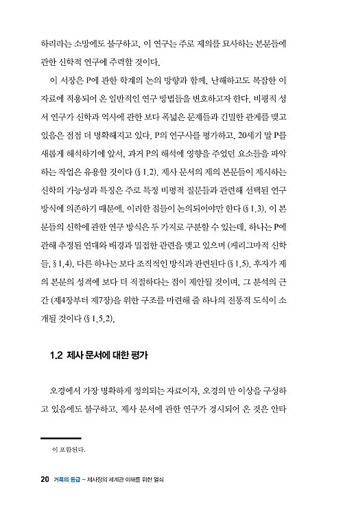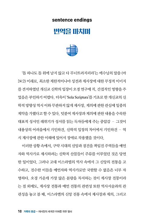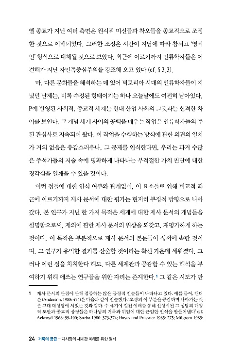 부정하고 정한 것을 분별하라고대 이스라엘에 있어서 예언자들이 아니라 제사장들이 각 영혼들을 돌보는 주체들이었으며, 삶 속의 수많은 영역들과 위급한 상황 속에서 삶의 전체를 대처할 수 있었던 의미의 우주를 창안한 것이 제사장 신학이라는 점은 주지되어야 한다. 확실히 제의적 경건과 법률적 경건보다는 에언자의 선포가 더 영적인 것으로 생각되었으나, 실재로는 아마도 그 반대가 현실이었을 것이다. _ 본문 중에서