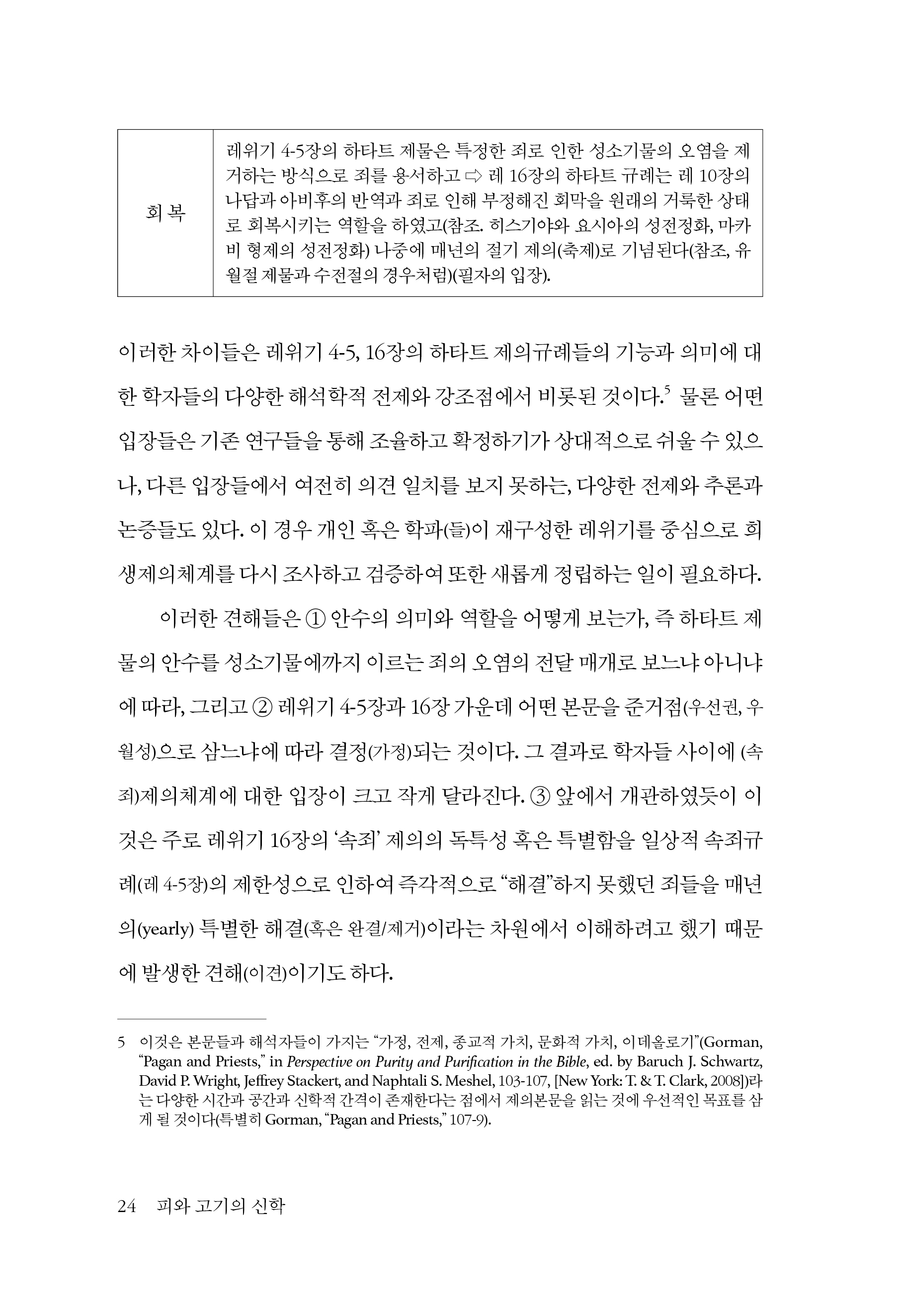 공적 제의의 개시식에서 하타트 제물의 피 사용(레 9장) 137