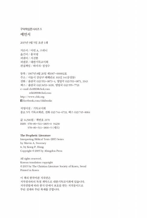 본서는 예언자가 자기 사회와 자기 시대의 사건에 대해 어떤 영향을 주었는지에 대해 주안점을 두고 서술된다. 예언자가 말한 미래에 일어날 일에 대한 관심사를 저버리지 않으면서, 우리는 예언자의 메시지가 오늘 우리 시대에 어떤 영향을 끼치는지에 대해 반드시 숙고해야만 한다. 이런 측면을 간과하는 것은 사실 우리 시대에 중요한 통찰을 제공할 수 있는 예언서를 오늘 우리 시대로부터 잠재적으로 고립시키는 결과를 초래하고 만다. 이 책은 예언서가 궁극적으로 그들이 살던 시대의 악의 문제에 대해 씨름하고 있음을 보여준다. 그것이 하나님으로부터 온 것이든 사람에게서 비롯한 것이든 악의 문제는 예언서의 중심 주제이다. 우리는 바빌론 포로기나 제2성전이 파괴된 시절과 유사한 때를 살아가고 있다. 지난 한 세기 동안 우리는 유대인 대학살을 목도하였다. 다른 나라나 민족을 학살하려는 시도 또한 끊이지 않았다. 두 번의 세계대전을 치렀다. 소위 ‘냉전’ 시대는 세상을 집어삼킬 뻔하였다. 핵무기가 만들어졌고 자연 환경은 끊임없이 파괴되고 있다. 생명을 송두리째 앗아갈 수 있는 상황이 되었다. 이들은 우리가 직면하고 있는 문제의 극히 일부분일 뿐이다. 인종 차별과 여성 혐오, 경제적 착취, 그리고 그 배후에 있는 위선과 기만은 이루 다 헤아릴 수도 없다. 하지만 적어도 이들은 우리가 새 시대에 어떤 종류의 문제에 직면하게 될지 알려주는 좋은 예가 될 수는 있을 것이다. 예언자는 매 순간 백성에게 바른 삶을 살 것을 요청한다. 문제는 어제가 아니다. 하나님이 어떤 악을 용인하셨는지, 우리가 어떤 악을 행했는지가 문제가 아니다. 내일이 문제다. 우리는 내일을 위해 어떤 책임 있는 삶을 살 것인가? 한 예언자가 부르짖은 것처럼 말이다.