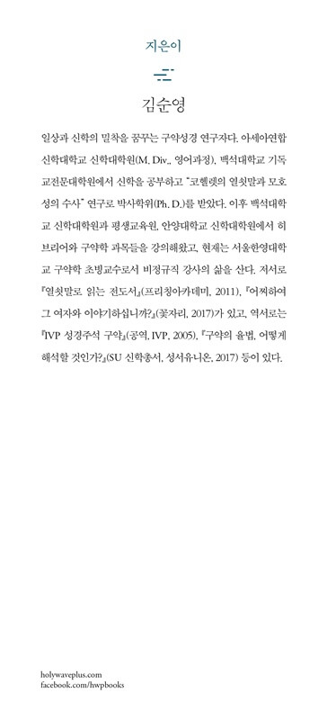 ● 코헬렛이 바라본 세상은 아침 이슬처럼 사라지면 그만이어서 덧없기 그지없다. 인간의 삶이란 허공에 흩어져 버리고 마는 한숨이며 쉬이 풀리지 않는 수수께끼다. 이 세상은 정의와 공평이 아름답게 이루어지는 깔끔하고 단정한 세상이 아니라 부조리로 얼룩진 세상이다. 그 표면은 매끄럽지 않고 울퉁불퉁하다. 어쩌면 이 모든 현상을 포괄하는 금언으로서 “헛되고 헛되다”, 또는 “덧없고 덧없다”라는 말이 불편하게 들릴지도 모른다. 그러나 이 말은 현실 세계에 대한 정확한 해석과 판단을 가차 없이 표현한 한마디 외침이 아닌가? _1장 “하나님의 선물, 삶을 즐거워하라”