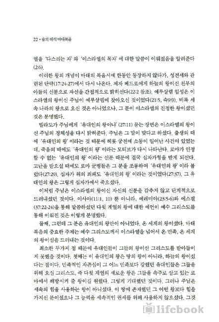 "공관복음에서 다른 복음서와의 차이점을 통해 유독 마태만이 가지는 독특한 관점과 특성을 이해하며 그것을 살려 이해할 수 있었다."