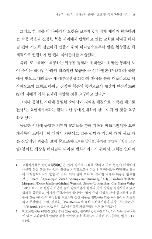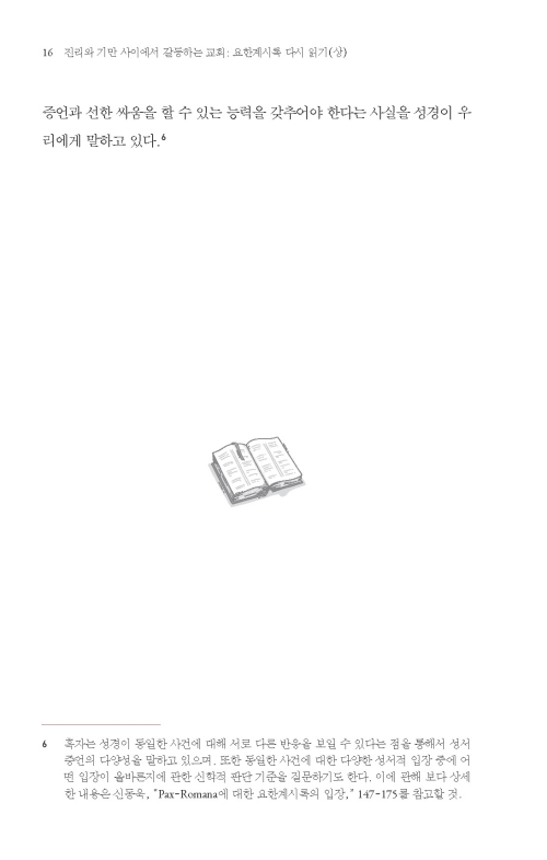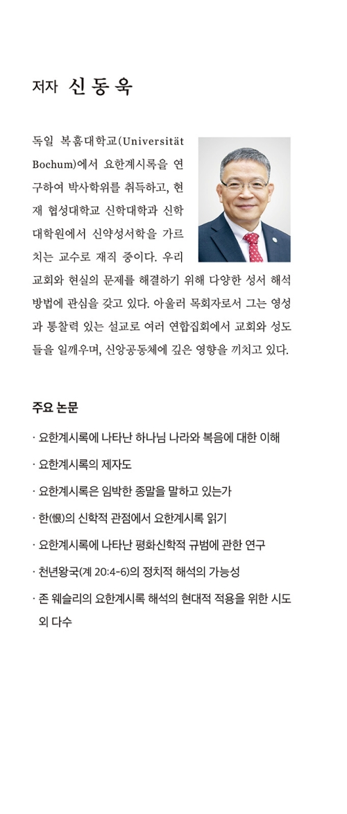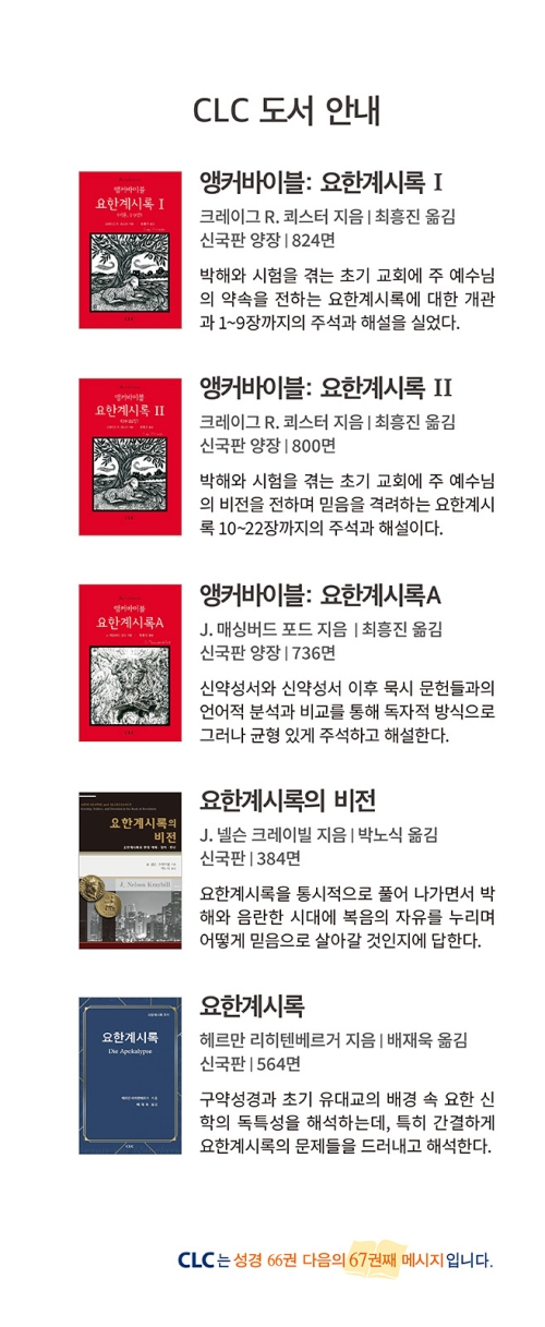 요한계시록은 새 하늘과 새 땅을 이 땅에 이루기 위해 바벨론적 가치를 따라가는 교회와 세상을 개혁하시려는 하나님의 마음을 환상으로 이야기해 주는 그림책이라 할 수 있다. 따라서 본서는 요한계시록을 세대주의적 종말론 시각에서 해석하는 기존의 입장을 거부하고, 불법과 타락에 저항하는 교회 개혁서와 신앙 개혁서로 읽을 수 있도록 해설했다. 또한, 요한계시록의 환상을 통해 우리 교회의 현실과 미래를 새롭게 인식할 수 있도록 해설했다. 요한계시록에 관심을 가지고 공부하려는 이들이나 좀 더 깊이 새롭게 연구하려는 이들, 강해 설교를 준비하는 이들에게 유용한 자료가 될 것이다.