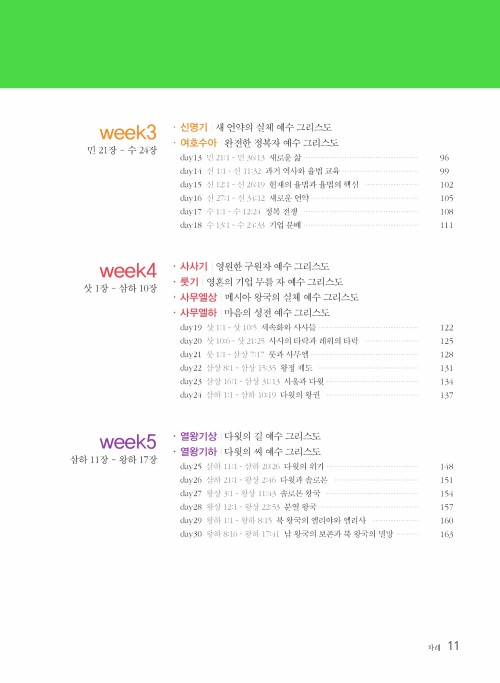 - 15주(90일) 성경 읽기 진도에 따라 통독의 실제적인 가이드라인을 세울 수 있다(1년 4독).