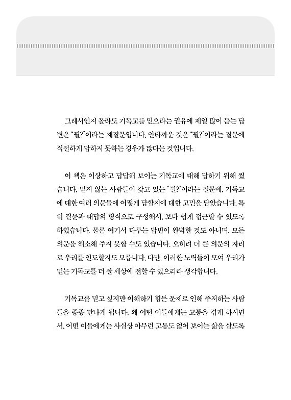 한국 교회 성도라면, 또 모태신앙이든 아니든, 하나님을 믿던 안 믿던 누구나 한 번은 가질 수 있는 기독교에 대한 기상천외한 질문들을 모아 놓았다. 그리고 동일한 고민을 하며 젊은 시절을 보냈던 양승언 목사가 드디어 세상에 그 답을 내놓았다!