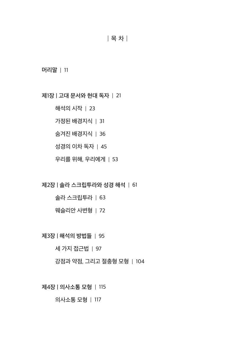 이 간결하면서도 알찬 책은 ‘성경을 어떻게 읽을 것인가?’를 설명하는 해석학 책이다. 성경이 특정한 역사를 배경으로 한 책이라는 ‘역사성’과, 모든 시대 모든 사람을 향한 하나님의 말씀이라는 ‘초월성’을 함께 견지하면서 성경에 접근하는 책이다. 그래서 본서는 ‘역사적으로 해석하고 초월적으로 적용하는 규칙’을 마련하고자 한다. ‘해석학’이라는 듣기만 해도 버거워지는 표현에도 불구하고, 본서는 놀랍도록 쉽게 그 어려운 ‘해석학’을 풀어간다. 본문과 독자 사이에 존재하는 무수한 문제를 다루면서, 저자가 자유자재로 사용하는 사례들은 해석학의 쟁점을 이해하는 데 큰 도움이 된다. 이성과 경험과 전통을 존중하되 성경으로 모든 것을 통제하게 하는 웨슬리안 사변형은 흥미롭고 현실적이며 유익하다. 쉽고 간결하게 풀어가면서도 필요한 부분에서 각주를 통해 적절하게 소개된 참고문헌과, 마지막 장에 집중적으로 소개된 기본적인 문헌 소개는 독자들에게는 무척이나 유용할 것이다. 이 책 전체는 매우 설득력 있고 현실적이며 유익하고 풍성하다. 계속해서 ‘문자’를 소중히 하되, ‘배경지식’을 고려하며 해석해야 한다는 저자의 주장은 지극히 당연하면서도 현실에서는 손쉽게 무시된 기본적인 원칙이다. 본서가 말씀을 사랑하고 그 말씀을 따라 오늘을 살아가기 원하는 우리네 성도들에게 널리 읽히고 토론되고 나누어지길 바란다.