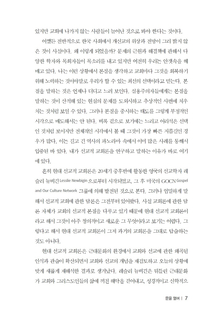 지금까지의 잘못된 교회와 선교 이해를 과감히 내려놓을 용기만 있다면, 이 책이 말하는 선교적 교회론을 통해 올바른 ‘교회’와 ‘선교’를 재정립할 수 있을 것이다.