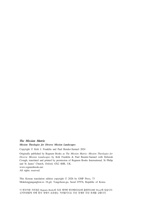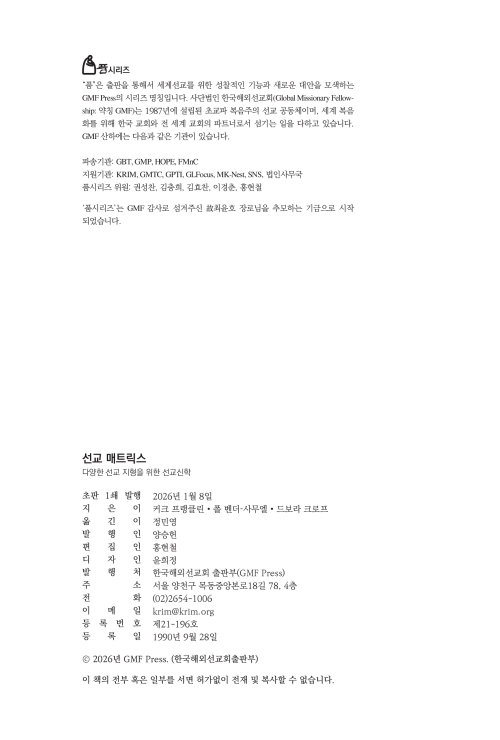 선교 커뮤니티는 점점 더 다양해지는 글로벌 교회와 협력하여 급변하는 세상을 더 잘 헤쳐 나갈 수 있도록 돕는 신학적 도식이 절실히 필요하다. 방법론은 너무 빨리 경직되지만, 상황에 따라 유연하게 조정할 수 있는 매트릭스는 강력하고 민첩한 도구가 된다. 『선교 매트릭스』가 정확히 그것이다.
