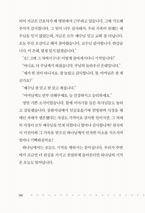 세상에서는 큰일도 천국에서는 작게 여기는 마음으로, 영혼을 구원하는 일이라면 작은 일도 크게 보자는 마음으로 삶의 모든 순간을 소중히 여기며 전도했습니다. 그러자 제 생활이, 제 삶이 우선 행복해졌습니다.