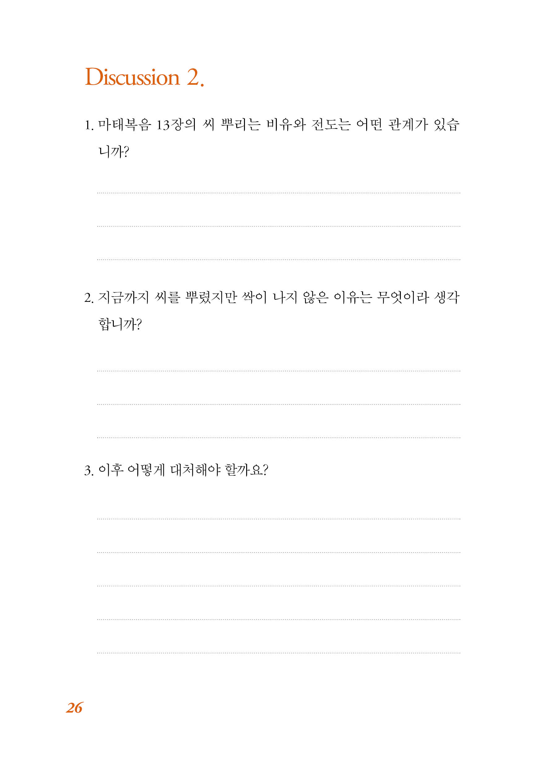 전도는 씨 뿌리는 것으로 비유할 수 있다. 보통 씨를 뿌릴 때는 그 토양의 상태가 중요하다. 그래서 농사를 짓기 전에는 먼저 밭을 가는 작업을 한다. 전도도 마찬가지다. 당신은 전도를 할 때 어떤 토양에 씨를 뿌리고 있는가? 씨를 뿌리기 전에 어떤 준비를 하고 있는가?
