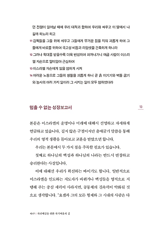 이 책에는 삶의 모든 부유물을 버리고 본질, 그 하나에만 집중하게 만들었던 옥한흠 목사 특유의 스피릿이 그대로 녹아 있다. 단순히 교역자뿐만 아니라 주의 길을 제대로 가길 원하는 사람이라면 반드시 새겨들어야 할 메시지다.