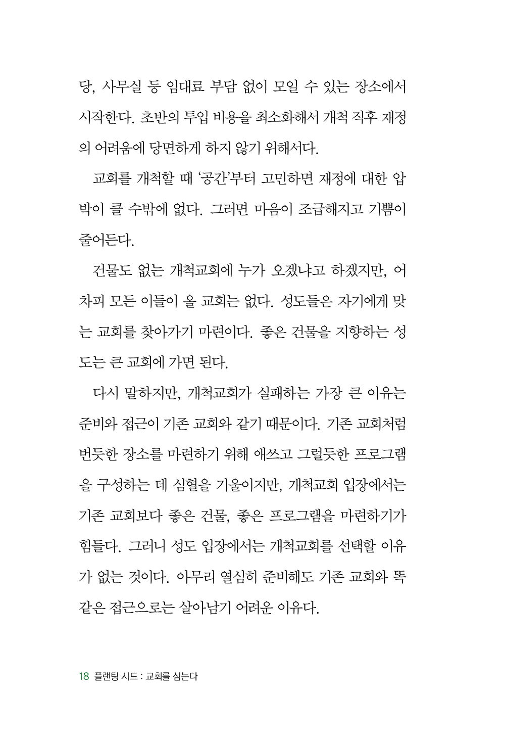 교회를 개척하는 일은 씨앗을 심는 것과 같다. 겉으로 보기엔 똑같아도 씨앗이 심긴 땅에선 생명이 자라고 있다. 이 책에는 교회와 믿음에 대한 이야기, 개척의 길에서 만난 어려움과 노하우, 그리고 힘들어도 하나님이 주신 꿈을 품고 개척의 길을 걷고 있는 모든 개척자를 향한 위로와 응원이 담겨 있다.