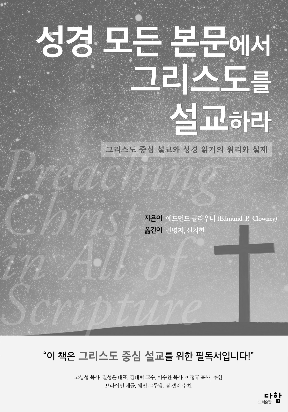 이 ‘그리스도 중심 설교’를 설명하는 데 클라우니를 빼고 논하기는 힘듭니다. 그리고 그의 책 가운데 이 책 『성경 모든 본문에서 그리스도를 설교하라』는 ‘약방의 감초’와 같은 역할을 하는 책입니다.