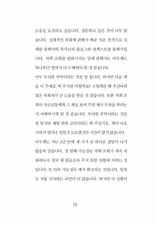 최근 우리 교회는 변화를 시도하다가 절반 가까운 성도들이 떠나갔다. ‘이 책을 좀 더 일찍 발견했다면 얼마나 좋았을까?’ 평신도 리더십으로서 아쉬운 맘이 크다. _ 신디 Cindy