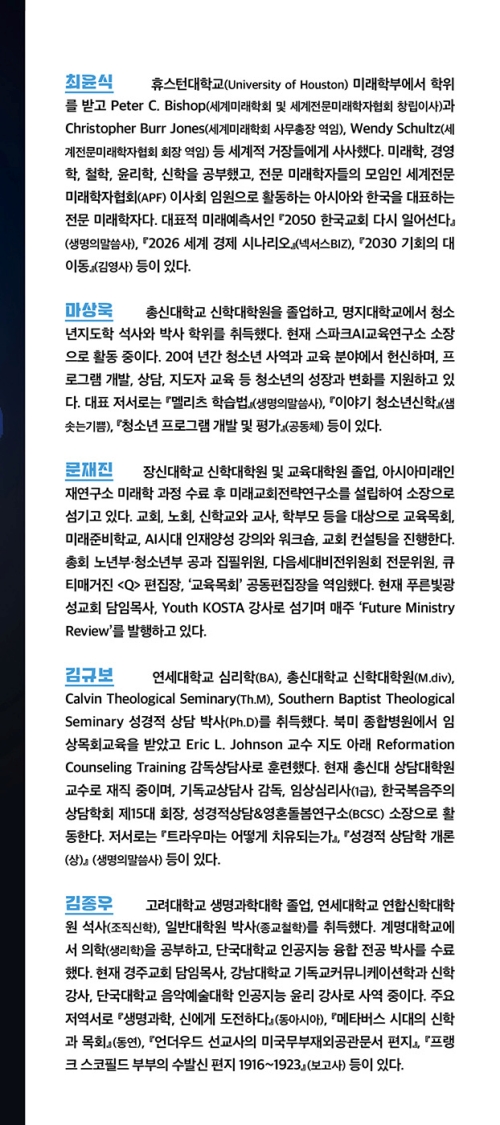 • 앞으로 다가올 AI 시대를 지혜롭게 대비하고 싶은 평신도와 교회 리더