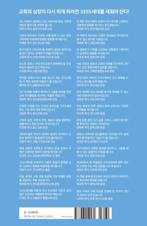 3355세대를 어떻게 다시 주님께로 이끌고 살려낼지 고민하는 이들에게 반가운 책입니다.