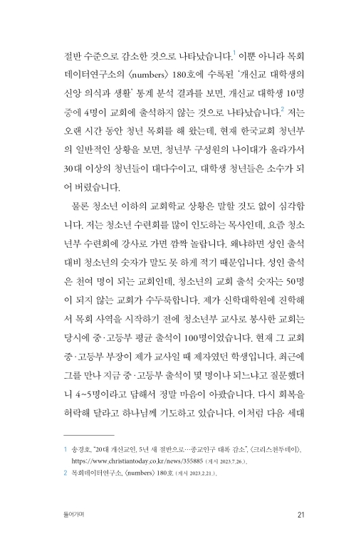 다음 세대의 회복과 교회의 미래를 진지하게 고민하는 모든 목회자에게 일독을 권합니다.