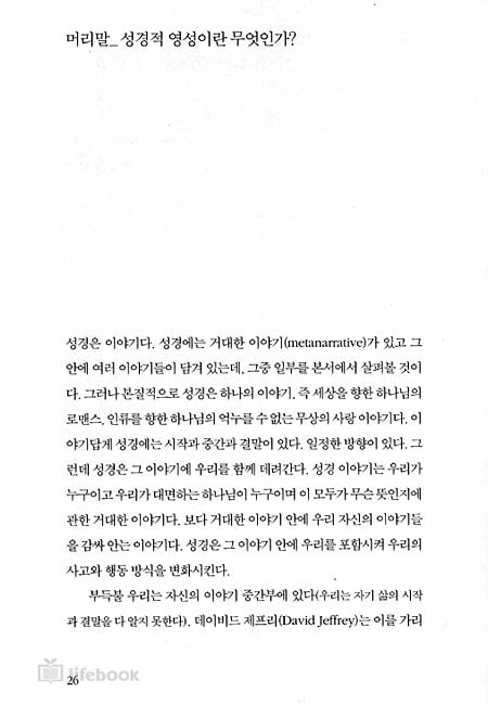 그리하여 그분의 말씀인 성경 이야기(story)가 어떻게 우리의 삶에 의미를 부여하며 우리로 하여금 그 말씀을 삶으로 살아내도록 하는