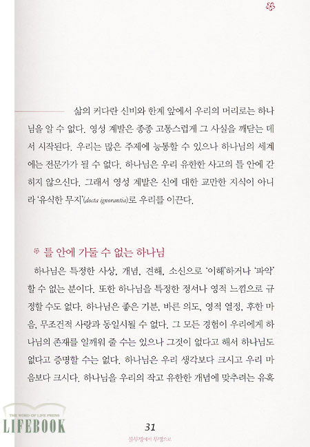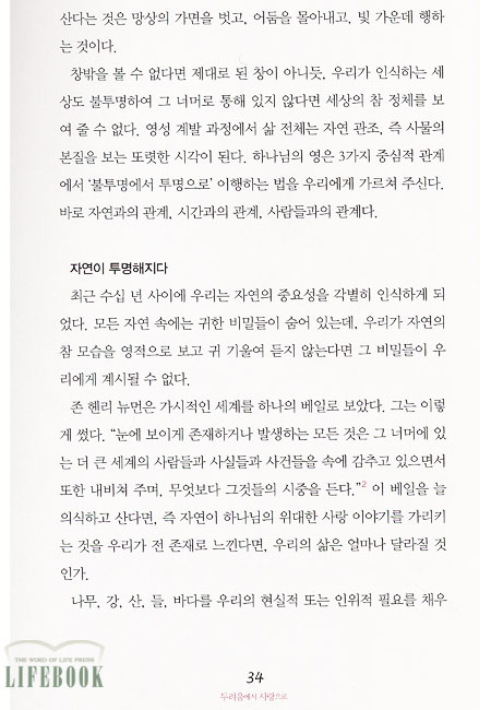 보기에는 이질적인 것 같지만 실상 우리 삶 속에 은혜의 이행으로 공존하는 것들, 즉 슬픔과 기쁨, 원망과 감사, 두려움과 사랑, 삶과 죽음을 이 책은 아주 감동적으로 풀어낸다.