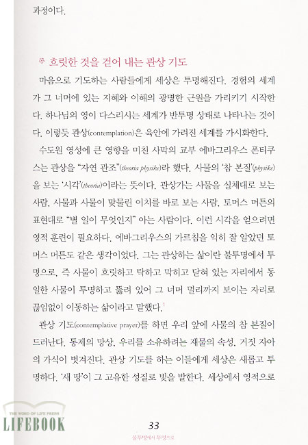 헨리 나우웬에게 특별히 중요했던 측면 하나를 통합한 것이 이 책의 강점이다. 주님의 아름다움을 보기 위하여 예술작품들을 관상하는 법, 즉 ‘거룩한 관찰’을 배울 수 있다.