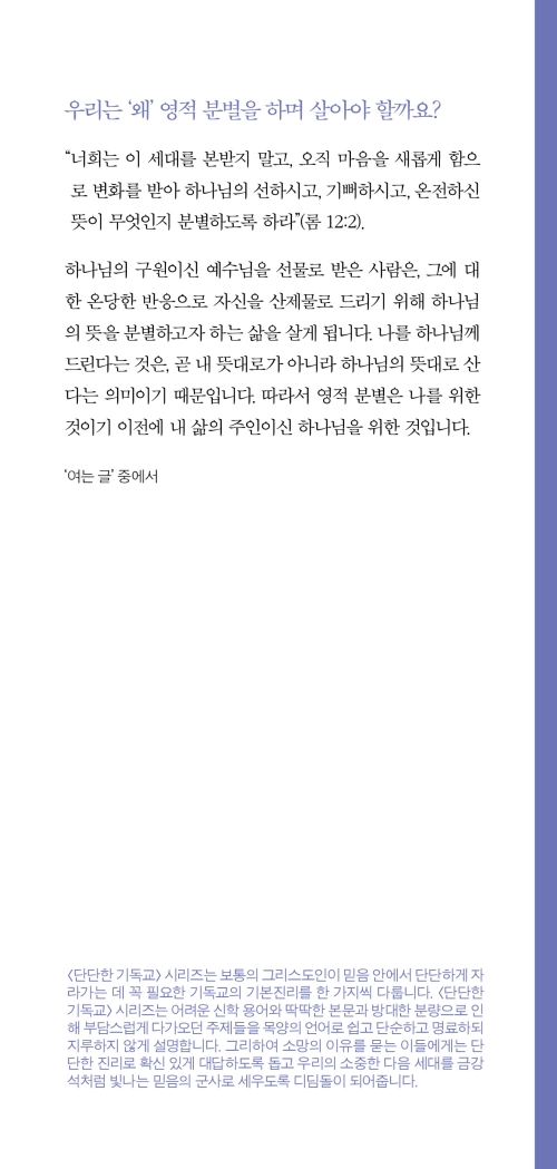 <단단한 기독교> 시리즈의 22번째 책으로, 모든 그리스도인이 확실한 영적 분별력을 갖추고 하나님의 뜻대로 살아가도록 돕기 위한 필독서입니다.