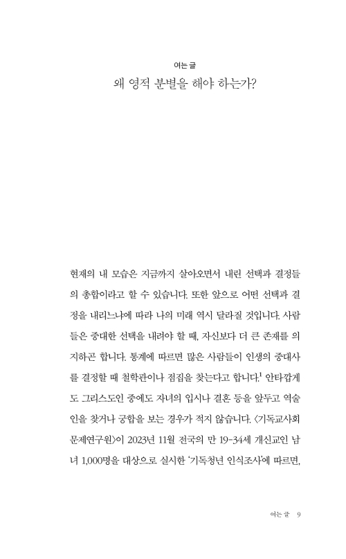 현장 목회자이자 영성 신학자인 저자 정재상 목사는 영적 혼란과 모호함이 극심한 이 시대에 '나침반'을 제시합니다. 이 책은 점집이나 역술인을 찾는 그리스도인이 적지 않은 현실 속에서, 모든 성도가 주체적으로 하나님의 뜻을 분별하고 영적 성숙에 이르도록 돕기 위해 쓰였습니다.