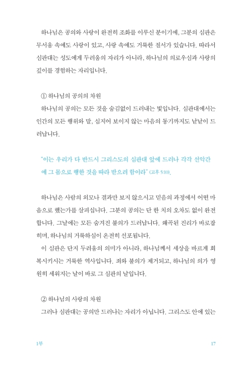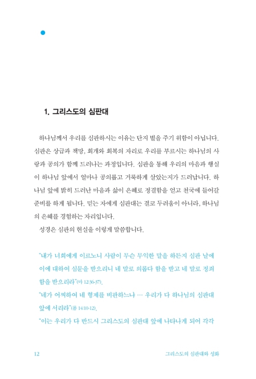 이 책은 그 질문에 대한 성경적 해답을 제시하고자 합니다. ‘그리스도의 심판대’의 진리를 바로 이해할 때, 우리는 하나님의 공의와 사랑을 왜곡하지 않고 복음의 본질을 올바로 붙잡을 수 있습니다.