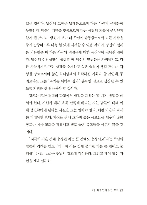 장로 직분에 대해서는 장로부터 청년까지 모든 신자가 다 충분히 이해해야 한다. 목회 서신은 목회자만 위한 것이 아니다. 청년은 장로직에 대해 배움으로써, 교회의 통치 원리를 배우고 교회의 건강한 통치 구조를 배우게 된다. 그리고 장로에게 복종하는 것이 얼마나 영예로운 것인지 알게 된다. 나아가 더러는 장로직을 사모하면서 자신을 준비해 나가게 된다. 장로의 일원이며 장로들과 함께 다스리는 목사가 장로 직분을 제대로 이해해야 함은 물론이다. 목사는 교회의 리더십을 양육할 책임도 있다. 리더는 태어나지 않는다. 양육과 멘토링으로 길러내야 한다. 교회 안에서 훌륭한 장로들을 길러내기 위해서라도 목사에게 이 책은 필요하다.