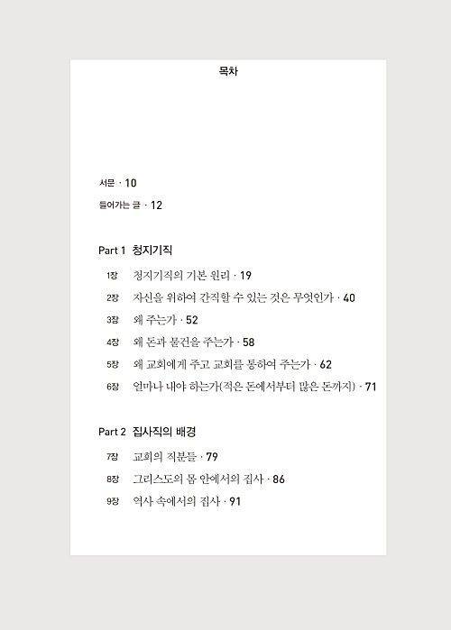 이 책에서 말하는 집사란, 교회 공동체 안에 한 명도 소외된 자가 없도록 돌보는 선한 청지기를 말한다. 이러한 집사직은 주님의 교회에 두 가지 축복을 가져다준다. 하나는 궁핍한 자들이 도움을 받으며, 다른 하나는 교회가 하늘에 축복을 쌓게 된다. 따라서 집사 직분에 대한 올바른 이해가 중요하다.